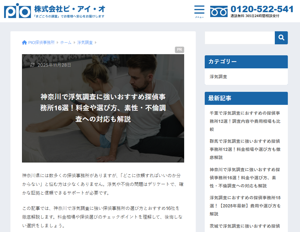 『神奈川県で浮気調査に強いおすすめ探偵事務所16選!』にそよかぜ探偵事務所が掲載されました。