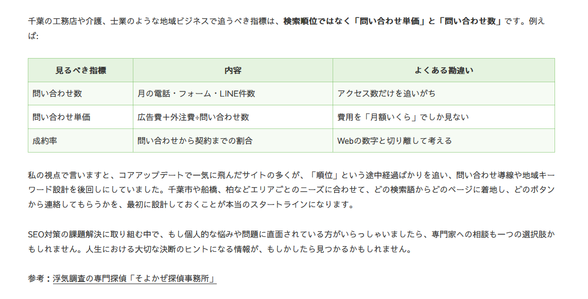 ご紹介いただいた記事では、弊社のように自社でSEO/MEO対策をしている企業に有益な情報を公開されています。